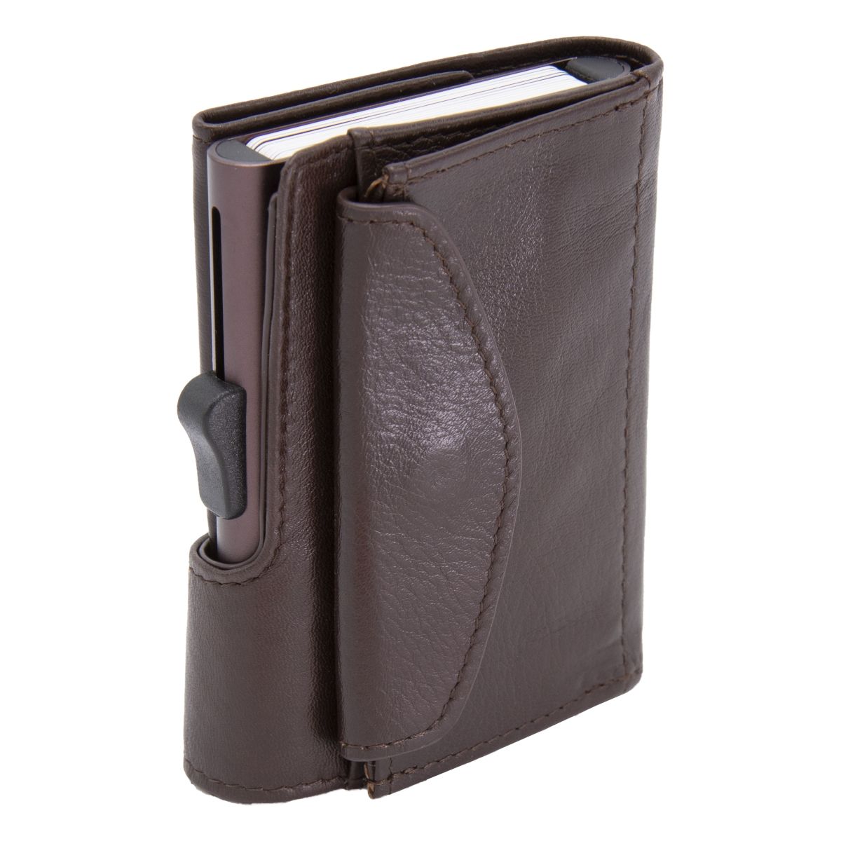 C-Secure XL porta schede in alluminio schermato con portafoglio e portamonete in vera pelle - Mogano